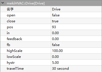 Drive component provides the mechanism to drive a floating type actuator with two outputs (open and close control). A single input with scale factor determines the desired position which controls the hardware output.