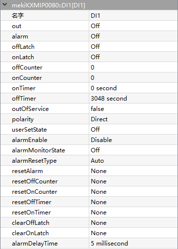off = Alarm is triggered when DI is off